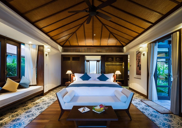 Trên ảnh là The Anam - khu nghỉ dưỡng cao cấp nằm bên Bãi Dài, ở vịnh Cam Ranh, Khánh Hòa. Resort gồm 117 villa, 96 phòng khách thiết kế đẳng cấp 5 sao bao quanh bởi những khu vườn xanh mát và bờ biển êm sóng.