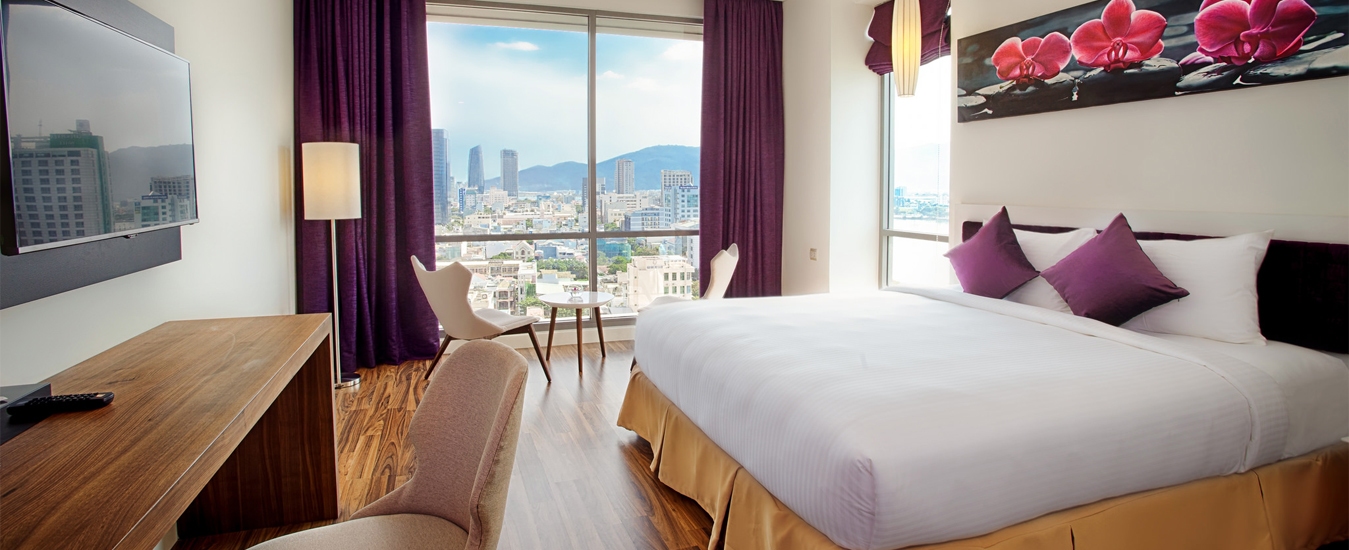 Phòng tiêu chuẩn 01 giường đôi hoặc 02 giường đơn. Tất cả các phòng có cửa sổ ,đón ánh sáng tự nhiên, tầm nhìn hướng ra dòng sông Hàn thơ mộng và chiêm ngưỡng cây cầu Rồng uy nghi lạ mắt.