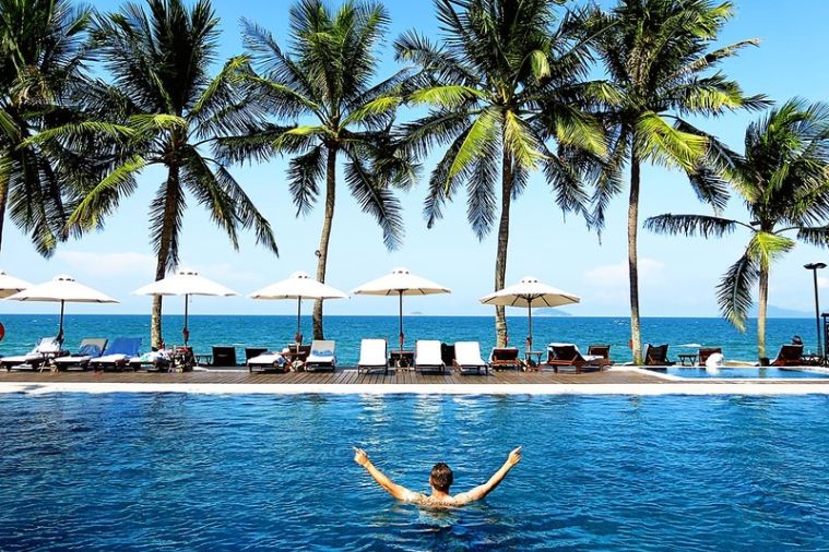 Hồ bơi ngoài trời là “đặc sản” không thể thiếu tại các khu nghỉ dưỡng 4,5 sao như Victoria Hoi An Beach Resort & Spa. Hồ bơi được xây dựng ngay sát bãi biển, được bao bọc bởi những hàng dừa xanh mát, một địa điểm lý tưởng để ngắm bình minh buổi sáng sớm.