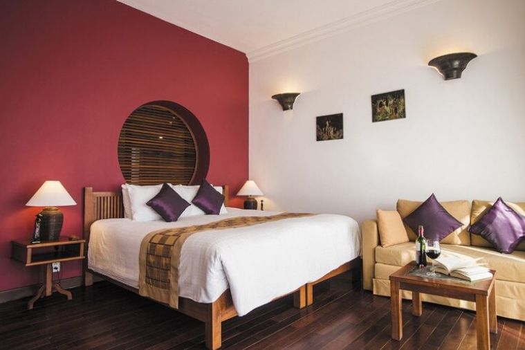 Hạng phòng đầu tiên mà chúng ta sẽ khám phá tại Victoria Hội An Beach Resort là River View Superior, một căn phòng rộng 34m2 có thiết kế cổ điển và nhẹ nhàng. Phòng sở hữu sàn gỗ cao cấp, tone màu ấm như hồng, nâu mang lại cảm giác ấm cúng và gần gũi vô cùng. Ban công riêng được lát gạch đỏ truyền thống và có ghế dài để bạn có thể ngồi tắm nắng cùng với view toàn cảnh ra sông thu bồn thơ mộng.